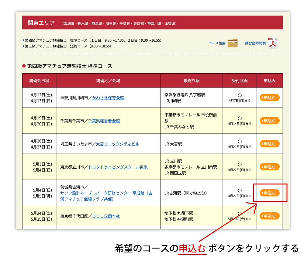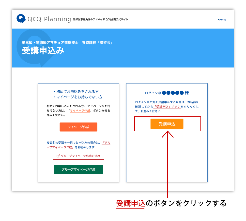 「受講申込」ボタンをクリックして、次の画面へお進みください